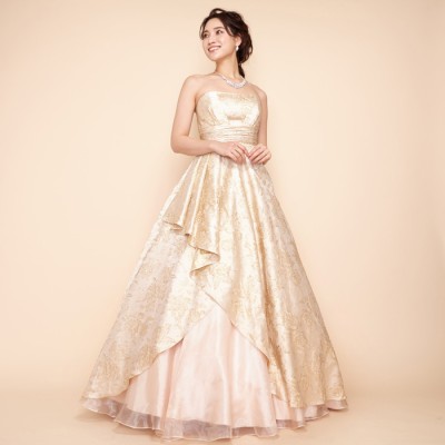 【OUTLET】シャンパンゴールドフラワージャガードドレス