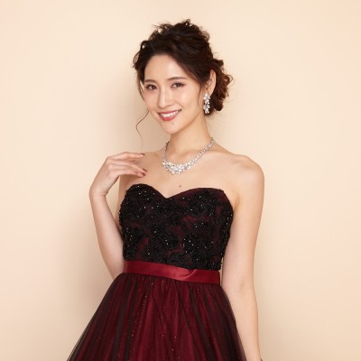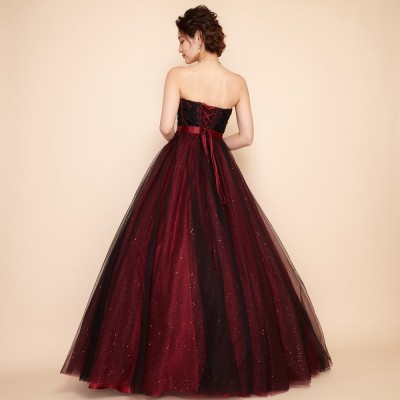 ビジュー刺繍レースグリッターワインブラックステージドレス