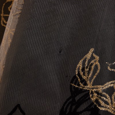 こちらのドレスに使用しているチュール生地にはゴールドグリッターとフロッキー加工が施されております。