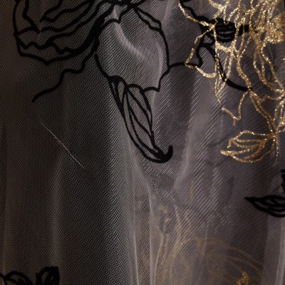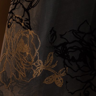 ゴールドブラックフロッキーチュール刺繍ワインドレス