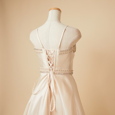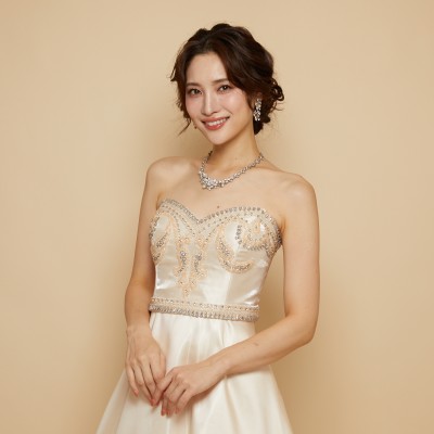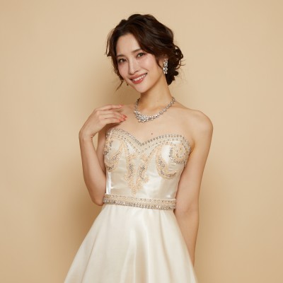 オーロラクリスタル装飾クリームパール艶サテンドレス