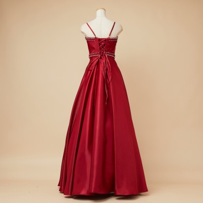 オーロラクリスタル装飾ルージュレッド艶サテンドレス