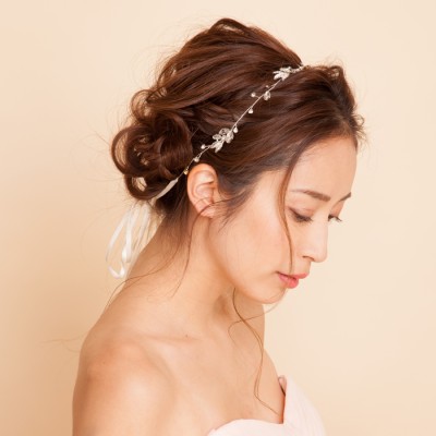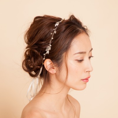 カチューシャの様にトップにセットしたり、サイドをピンで留めてバックカチューシャ風にセットしても素敵ですよ!