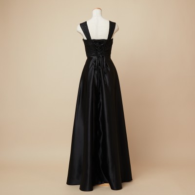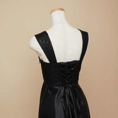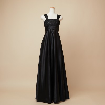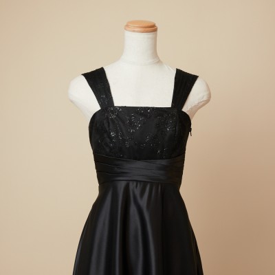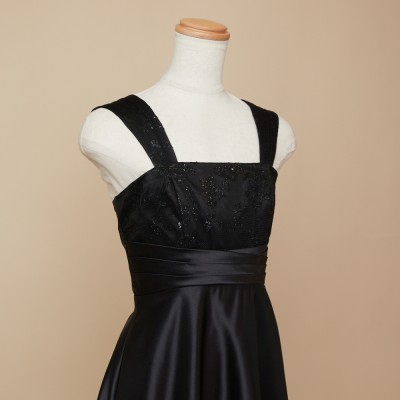高級感あるマットなサテン生地を使用した、スレンダーラインドレス。お姉さんぽく上品な着こなしが出来ます。シックで大人っぽいブラックカラーはコンクールやオーディションなどに特におすすめです。