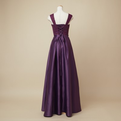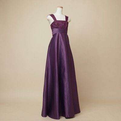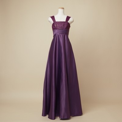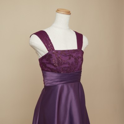 高級感あるマットなサテン生地を使用した、スレンダーラインドレス。お姉さんぽく上品な着こなしが出来ます。秋冬の演奏会におすすめなしっとり落ち着いた雰囲気のパープルカラー。