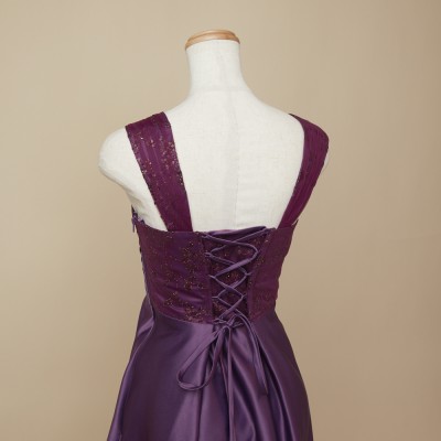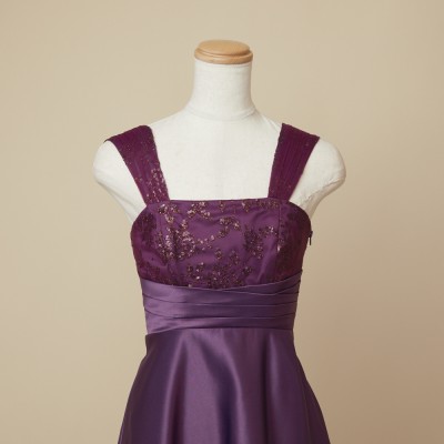 高級感あるマットなサテン生地を使用した、スレンダーラインドレス。お姉さんぽく上品な着こなしが出来ます。秋冬の演奏会におすすめなしっとり落ち着いた雰囲気のパープルカラー。
