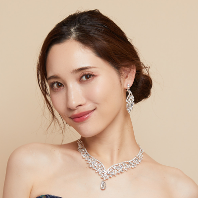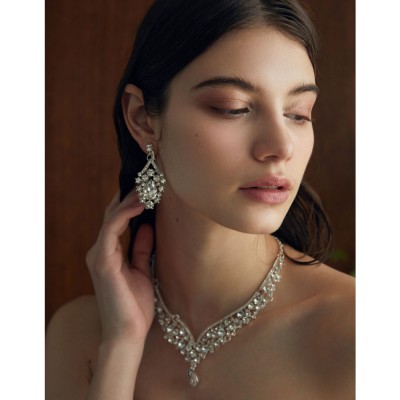 首元に沿ったエレガントなラインが特徴のボリュームネックレスイヤリングセット。大ぶりなサイズ感でもシャープですっきりした印象になるアクセサリーです。