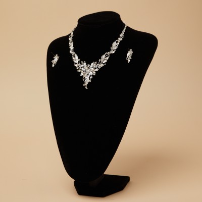 ウェービーリーフクリアストーンネックレスイヤリング セット