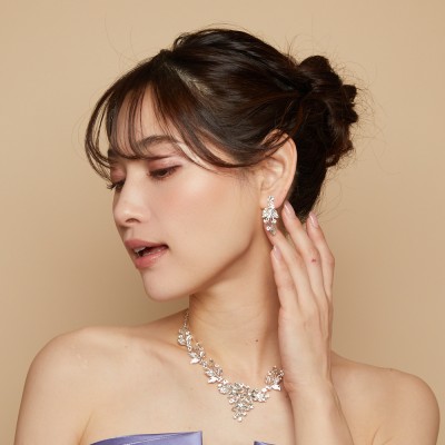 ブロッサムフラワーリーフネックレスイヤリングセット