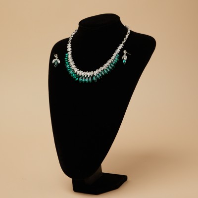 エメラルドグリーンカラーストーンネックレスピアスセット