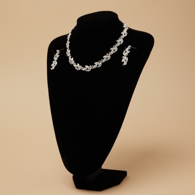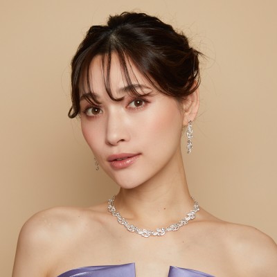 シンプルなリーフモチーフが連なった、シルバーカラーのネックレスピアスセット。ドレスを選ばず使いやすい1連スタイルのネックレスです。