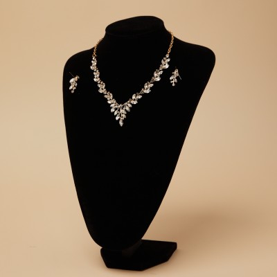 クリアストーンを散りばめた流れる様なV字のラインが大人っぽい、ゴールドカラーのネックレスピアスセット。程よいキラキラ感とシャープな印象が魅力のアクセサリーです。