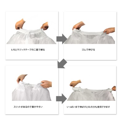 ※パニエ内側の縫い目部分が肌に触れて気になる場合は、ストッキングやレギンス、ペチコート等をご着用ください。